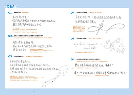 手書きアンケートは、個性的な筆跡や言葉使いも見て楽しい。好きなものや影響を受けた人、お気に入りの音楽など、作家の感性を育むプライベートも知れる内容になってます。